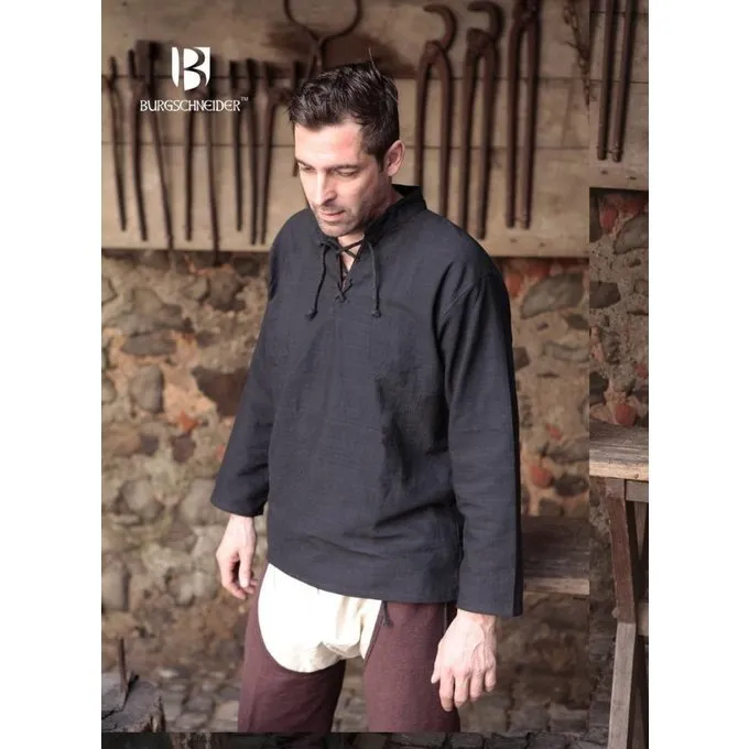 Een zwart hemd zoals hij vanaf de renaissance werd gedragen. Het hemd is voorzien van veters bij de nek waarmee hij kan worden vastgezet. Hij is gemaakt van een hoge kwaliteit ruw geweven katoen voor een extra historische uitstraling.