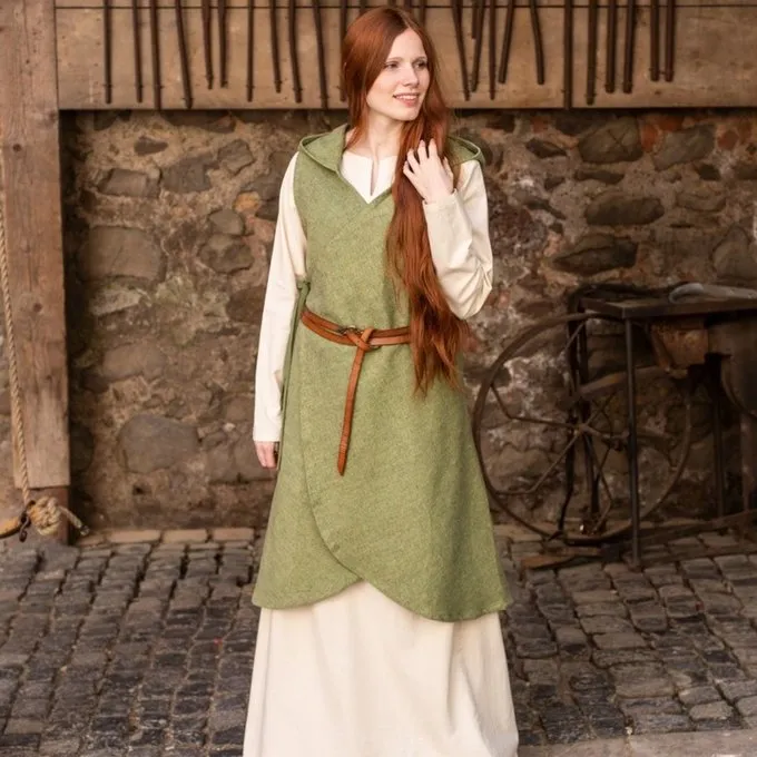 Met deze overjurk geeft je extra allure aan je LARP, Cosplay of festival outfit. Hij heeft een kap die over de schouders valt. Met een riem kan je de overjurk vastmaken om hem op een elegante manier over je jurk of tuniek te dragen.