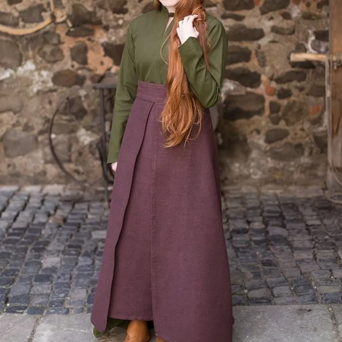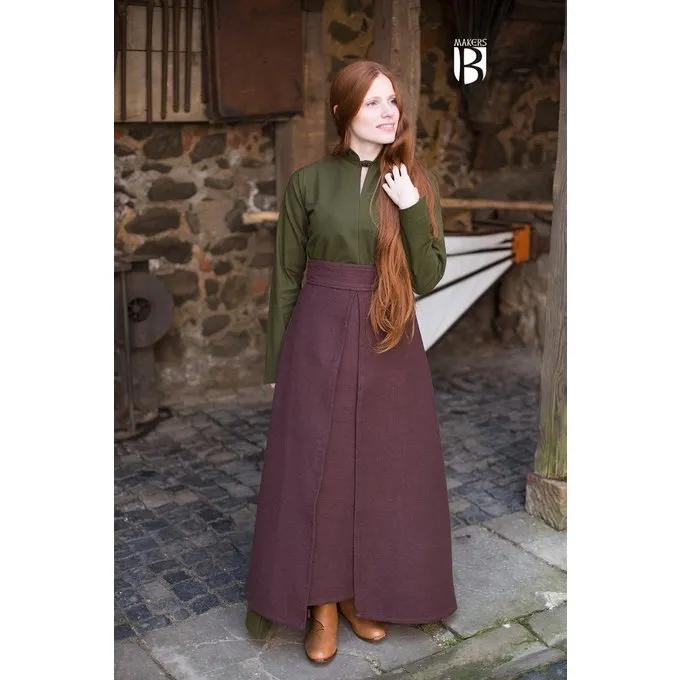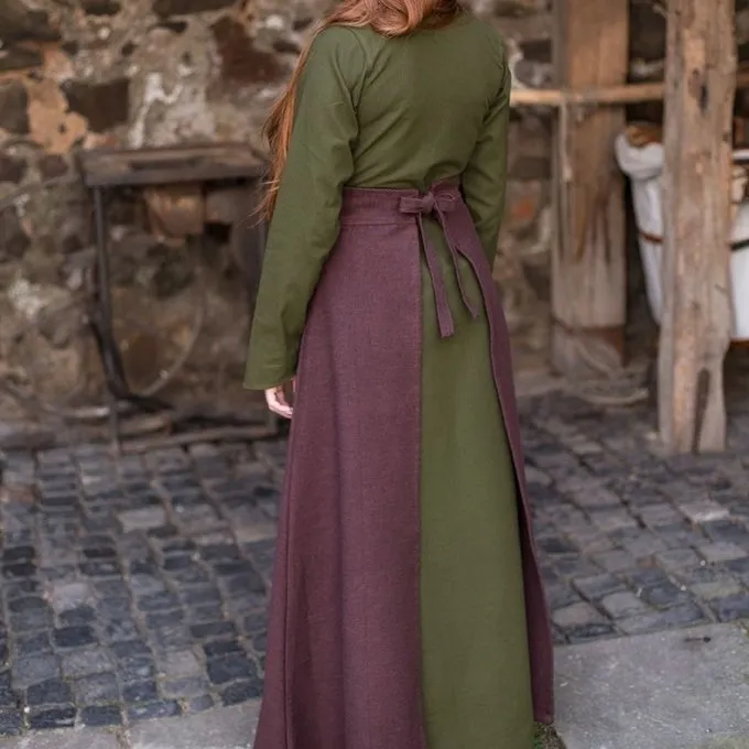 Met deze rok kan je op een goedkope manier een mooi LARP, Cosplay of festival outfit creëren. Aan de achterkant heeft de rok een band waarmee je de rok als een schort om je middel kan binden. Je kan hem dus ook makkelijk weer uitdoen. Deze rok bestaat uit twee delen met een onderrok, wat voor een gelaagd, volumineus en prachtig effect zorgt. Je kan hem dragen over een tuniek, over een simpele jurk of over een shirt met leggings.