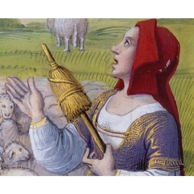 Dit schort is gebaseerd op Middeleeuwse originelen afgebeeld in verschillende manuscripten. Dit schort kan zowel worden gebruikt om voor te binden als om om te binden als korte mantel. Dit schort kan zelfs als hoofddoek worden gebruikt.