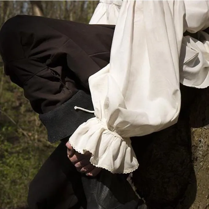 Dit hemd is geschikt voor het re-enactment en LARP van Renaissance, Barok, piraten, musketiers, boekaniers en Napoleontisch. Je kan hem los dragen of combineren met een riem en doublet.