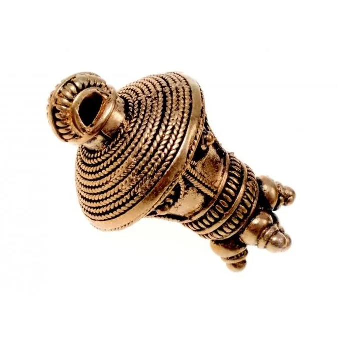 Dit sieraad is gemaakt naar een Germaans origineel uit de 1ste tot 3de eeuw n.Chr. Sieraden zoals deze werden tussen de 1ste en 3de eeuw n.Chr hoofdzakelijk door vrouwen gedragen. Ze zijn o.a. teruggevonden in Polen, Scandinavië en Noord-Duitsland. Deze hanger is semi-gegranuleerd.