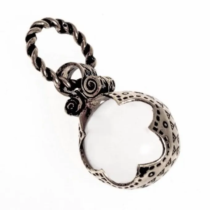 Dit sieraad is een replica van een 11de eeuws origineel teruggevonden op Gotland. Bergkristal was tijdens de vroege middeleeuwen ook bij de Vikingen zeer populair. Grote en kleine stukken bergkristal werden in sieraden verwerkt. Deze replica heeft in plaats van Bergkristal geslepen glas.