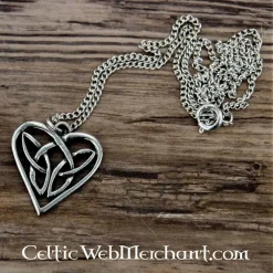 Deze tinnen hanger is gemaakt in de vorm van een geknoopt hart. Hij is 2,5 x 2,5 cm groot en wordt inclusief zilveren ketting geleverd.