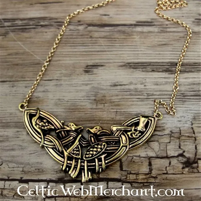 Deze handgemaakte bronzen ketting is gemaakt naar verschillende afbeeldingen uit het OudIerse Book van Kells. Motieven zoals deze werden in een grote variatie in Insulair Keltische manuscripten gebruikt. De motieven dateren uit de tijd (de 8ste – 10de eeuw) dat de meeste OudIerse verhalen zoals die van Cú Chulainn op schrift werden gesteld. Hij is verstelbaar en 45 cm tot 50 cm lang.