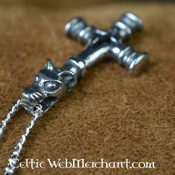 Deze Thorshamer is gebaseerd op een 9de-10de eeuws origineel teruggevonden in Foss in IJsland. De Thorshamer is aan het uiteinden voorzien van een Wolvenkop die mogelijk naar Fenrir verwijst. Deze Thorshamer is gemaakt van tin.