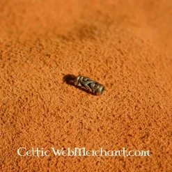 Deze baardkraal kan zowel in de baard en in het haar als aan kettingen worden vastgemaakt. Hij is gemaakt van brons met een binnendiameter van 0,2 cm. Hij is ca. 9 x 4 mm en het gewicht 3 gram.