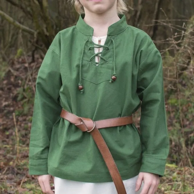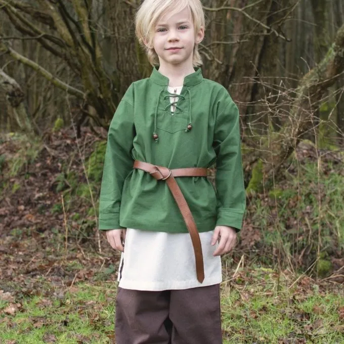 Dit hemd is perfect voor kinderen die zich willen verkleden als piraat, ridder, zeeman, schildknaap of middeleeuwer voor re-enactment, LARP, Cosplay of een festival. Hemden zoals deze werden gedragen van de late Middeleeuwen tot in de zeventiende eeuw.