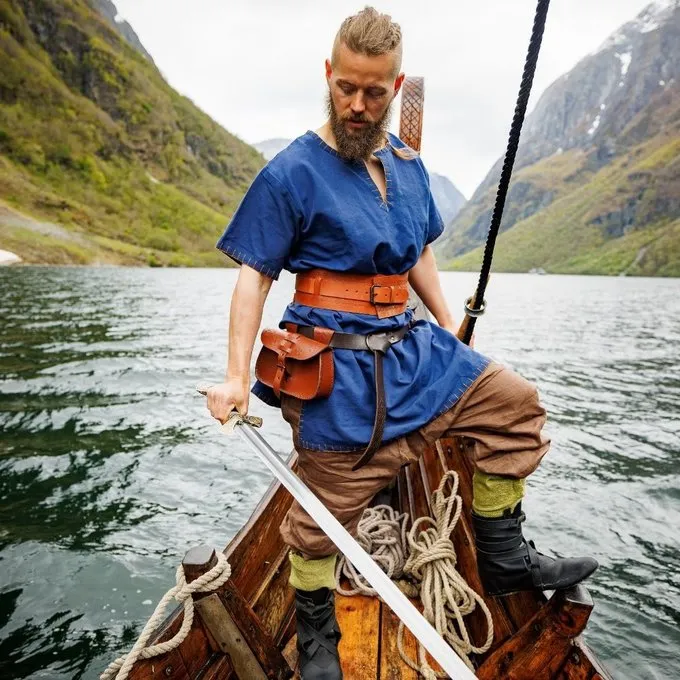 Dit tasje is versierd met zonnewielsymbolen en kan gebruikt worden voor het re-enacten van zowel de Middeleeuwen als de Renaissance. Het tasje heeft twee lussen om hem aan een riem te bevestigen.