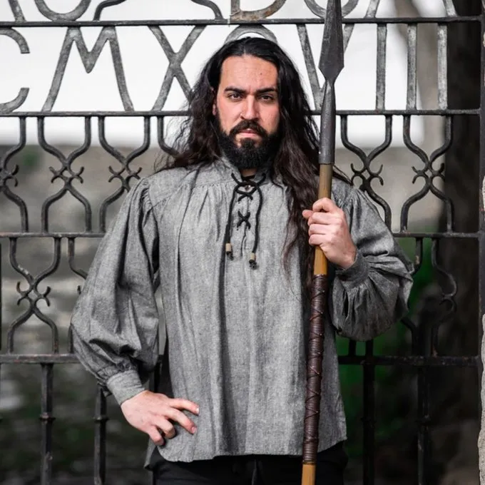 Dit hemd is gemaakt van een katoen-linnenmix. De hals is dicht te maken met een koord. Hij is verkrijgbaar in het blauw en crëme in maat S t/m XXXL.