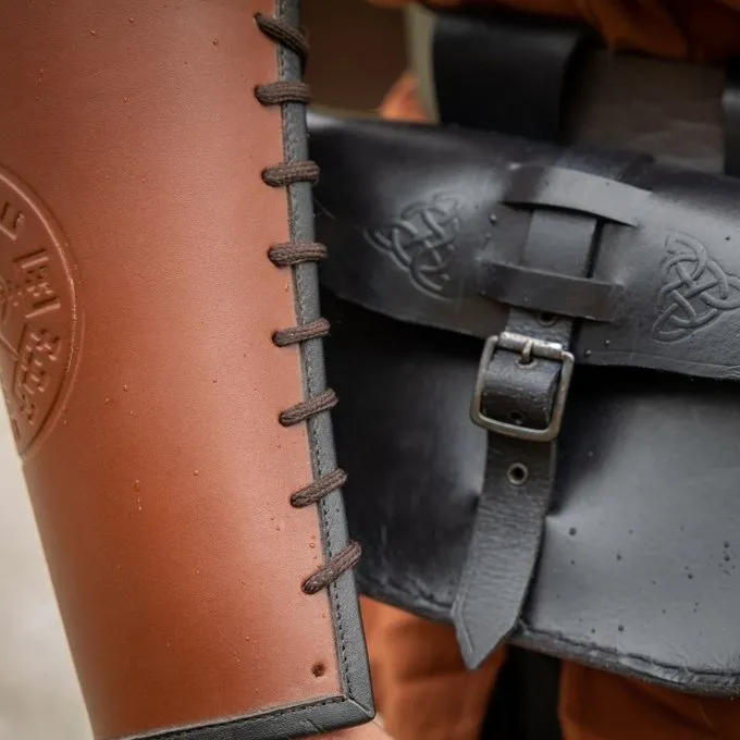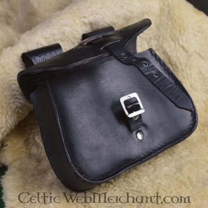 Dit tasje is prachtig gedecoreerd met Keltische knooppatronen op de opening en de lussen. Hij kan worden gebruikt voor (vroeg)middeleeuws re-enactment en LARP en is ook perfect voor festivals. Met de twee lussen kan je het tasje aan de riem hangen zodat je je portemonnee en andere belangrijke spullen altijd snel bij de hand hebt.