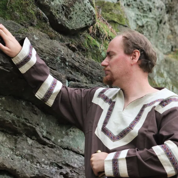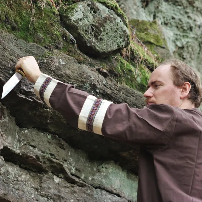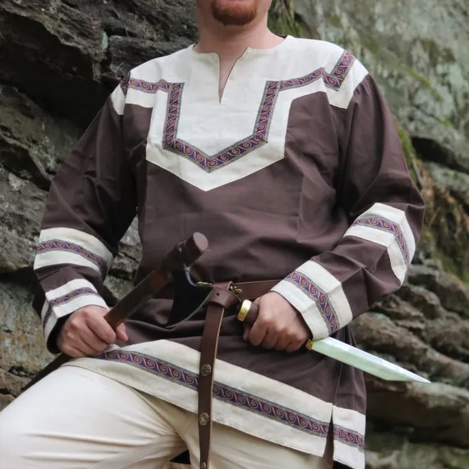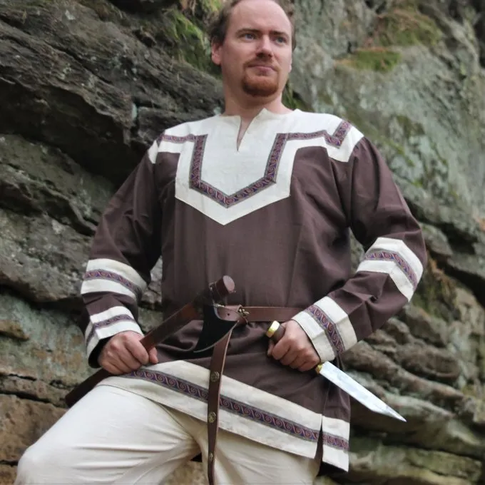 Tunieken zoals deze werden gedragen door Keltische mannen boven een broek en in combinatie met een mantel. Vrouwen droegen een rok onder de tuniek. De tuniek is gedecoreerd met schitterend borduurwerk.