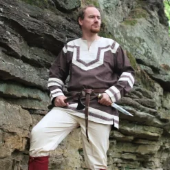 Product details: Samenstelling stof: 100% katoen (tuniek), 100% polyester (borduurwerk) / Maat: S tot XXXL, zie de maattabel hieronder / Kleur: Donkerbruin/ naturel. Borduurwerk: blauw en rood. / Gewicht:1 kg / Gebaseerd op historisch origineel / Wasvoors