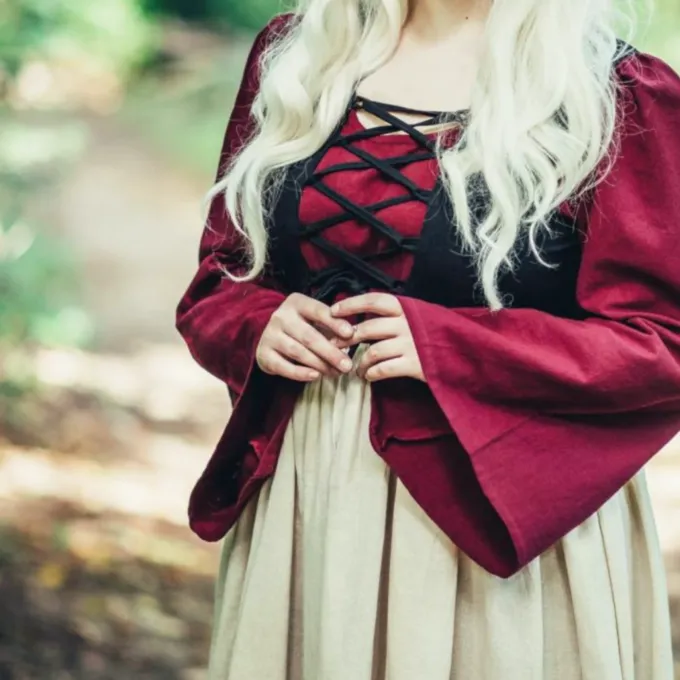 Leonardo Carbone Laatmiddeleeuwse Jurk Aurora, Rood-naturel