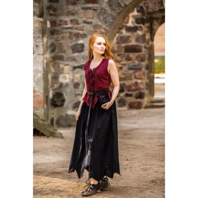 Dit mouwloze jackje is gemaakt van katoen. Hij is aan de voorkant dicht te rijgen met een koord en aan de achterkant op maat te stellen met een veter. Het jackje is verkrijgbaar in de kleuren zwart, groen, blauw, rood, donkerbruin en tabak in maat S t/m XXXL.