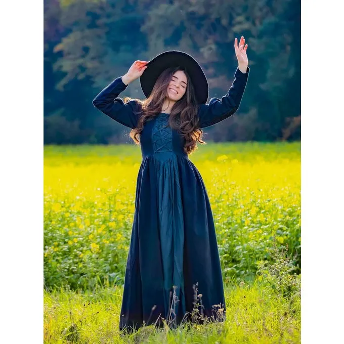 Deze elegante Middeleeuwse jurk is aan de voorkant voorzien van een vetersluiting. Hierdoor kan hij nog beter op je pasvorm worden aangepast. Deze jurk kan goed worden gecombineerd met een leren riem en andere historische en festival accessoires.