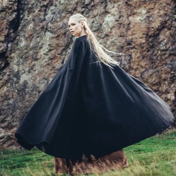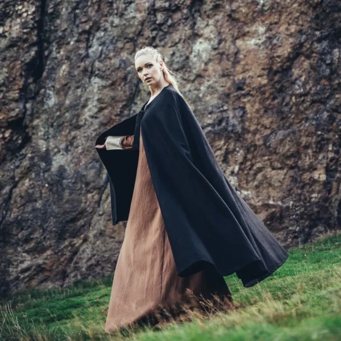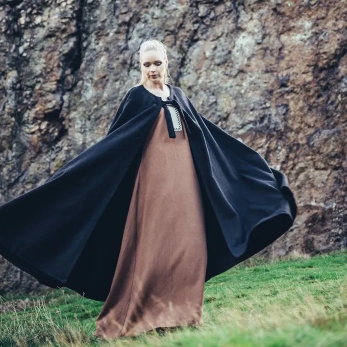 Functionele middeleeuwse mantel, geschikt voor het re-enacten van verschillende perioden. Deze mantel biedt uren bescherming tegen de regen, wind en zon. Ideaal voor het zomer en winterkampement. Deze mantel is gemaakt van wolmix en is verkrijgbaar in de kleuren: zwart, rood, groen, bruin, grijs, donkerblauw.