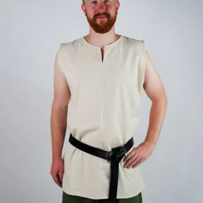 Tunieken zoals deze waren basiskledingstukken gedragen door mannen in geheel Europa van de Vroege tot Late Middeleeuwen. De tuniek kan apart worden gedragen of als ondertuniek bij bijvoorbeeld een andere kleur overtuniek. In koudere klimaten werden ze gecombineerd met een broek en beenwindsels.