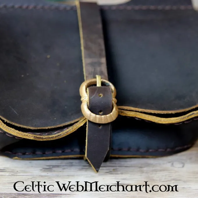 Details: Materiaal: nubukleer, messing / Formaat: 14 cm hoog, 21 cm breed, 5 cm diep / Kleur: bruin