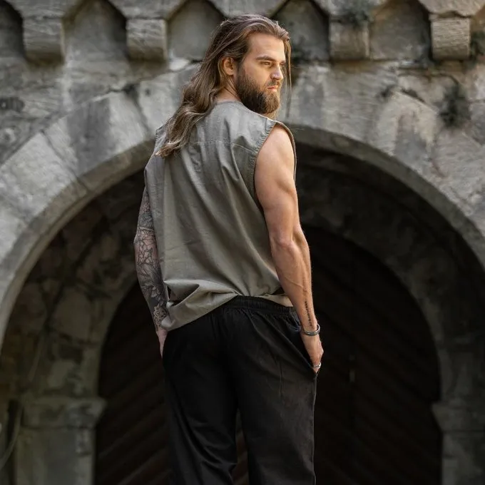 Universeel hemd geschikt voor talloze outfits. Hij is mouwloos dus ideaal voor warme festival dagen! Dit geweldige kledingstuk kan gemakkelijk worden gedragen bij historische broeken. Hij kan zowel voor Middeleeuwse als Piraten of vroegmoderne kostuums worden gedragen. Dit hemd is ook erg geschikt om te gebruiken als onderhemd voor bijvoorbeeld Landsknechten of Tudor outfits.