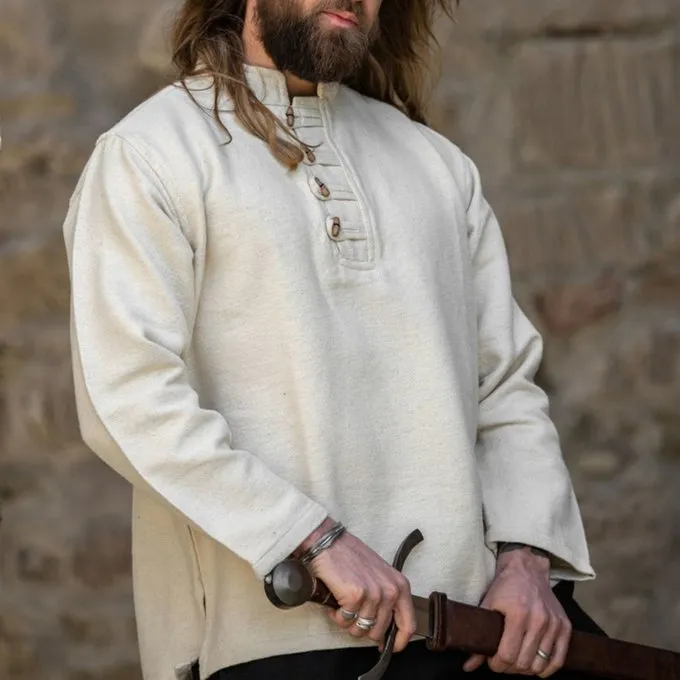 Dit hemd is gemaakt van dik, handgeweven katoen en kan bij de hals vastgemaakt worden met simpele knopen. Daarom was het de ideale kleding voor soldaten. Hij is verkrijgbaar in de maten S, M, L, XL en XXL in het zwart en wit.