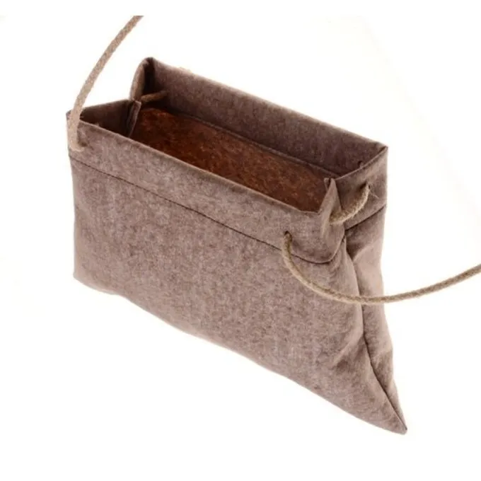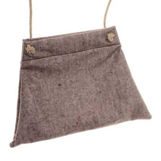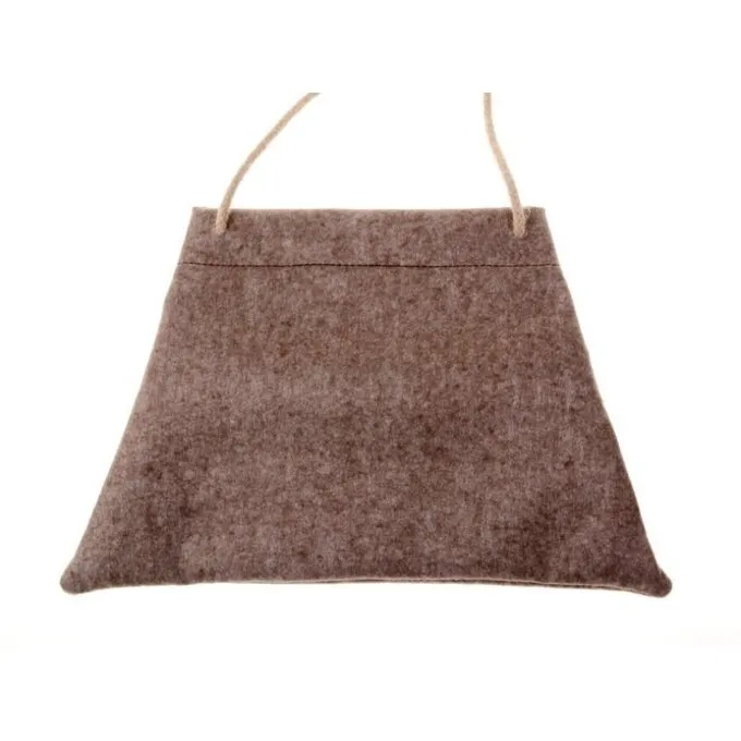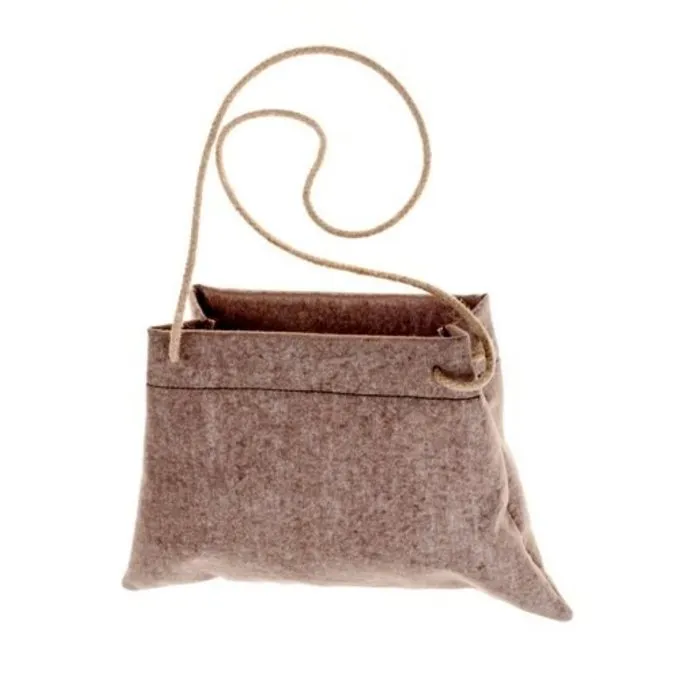 Materiaal: viltmix (50% vilt, 50% viscose), henneptouw / / Formaat: 35 x 23 cm / / Lengte schouderriem: 160 cm / / Gebaseerd op een historisch origineel