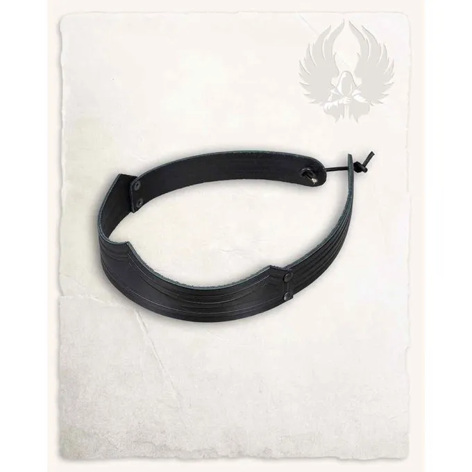 De kroon “Isidor” is gemaakt van hoogwaardig rundleer. Hij is te gebruiken bij verschillende kostuums en siert de hoofden van dwergen en barbaren, maar ook van avonturiers en ridders. “Isidor” is ideaal voor het bevestigen van een maliënkap en kan als licht hoofd pantser over een kraag worden gedragen. De maat kan individueel worden aangepast via een leren riem.