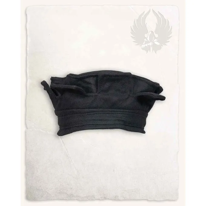 Deze hoed past bij elke waardige renaissance heer, of hij nu nobel, koopman of geleerde is! Het kan worden aangepast aan je hoofdomtrek met een ingenaaide band. Het is daarom ook ideaal om over een muts te dragen en valt daardoor nog meer op dan een hoofddeksel.