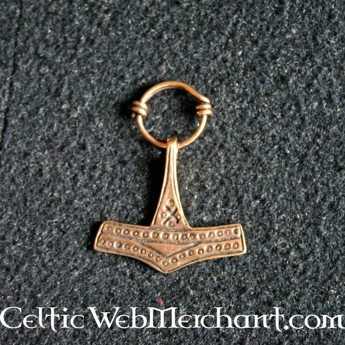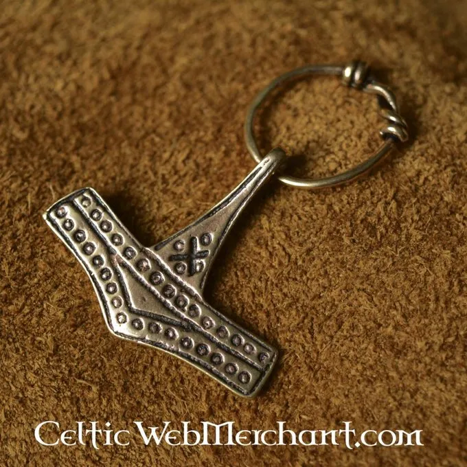 Deze Thorshamer is een replica van een zilveren exemplaar teruggevonden in Rømersdal. De hamer is het symbool voor de dondergod Thor. Hij werd met name door de boeren en krijgers vaak gezien als hoogste god van de Vikingen. Volgens de mythologie was Thors hamer gesmeed door de dwerg Brokk en miste hij nooit doel als hij werd geworpen.