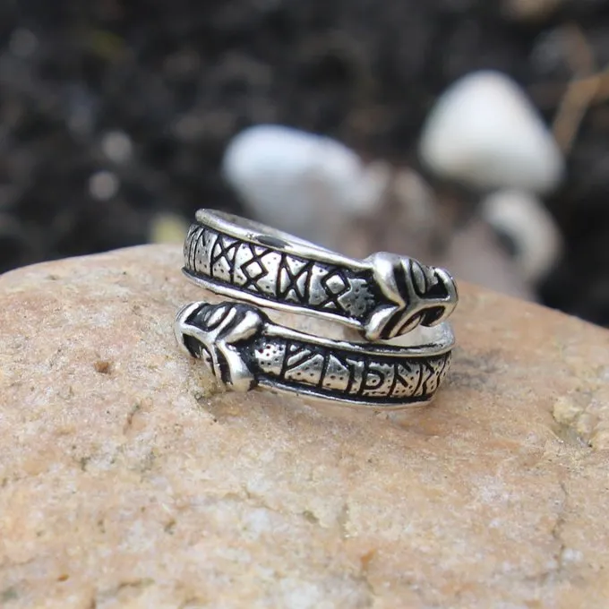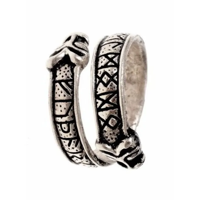Deze ring is geïnspireerd op de mythologische wolf Fenrir uit de Vikingtijd. De runentekens op deze ring vormen het Futhark, het Runenalfabet uit de Vikingtijd. Deze ring is verkrijgbaar in de maten S, M en L.
