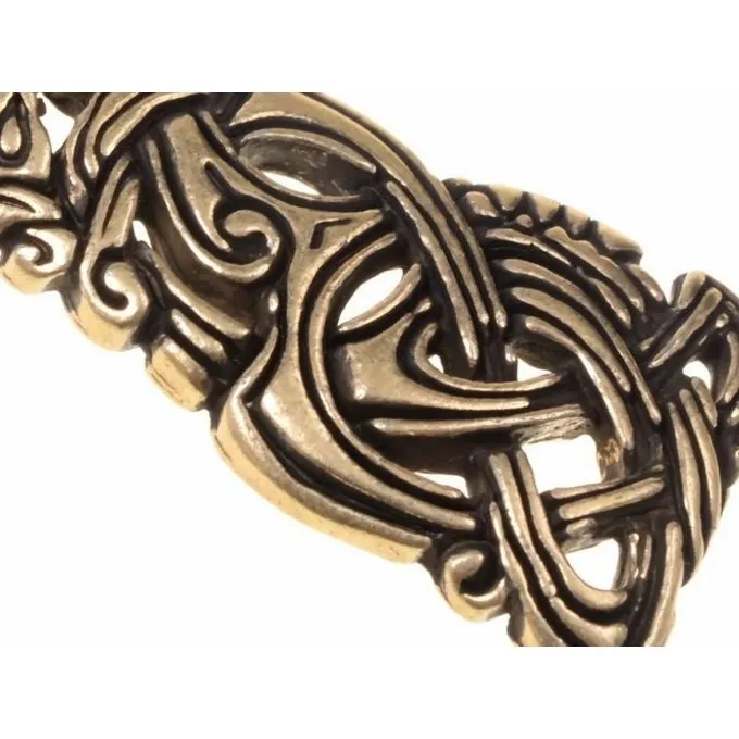 Dit Vikingsieraad is gebaseerd op een 9de-10de eeuwse riemtong. Op deze hanger staat de Midgardslang, een slang die in de Viking mythologie zich rond de gehele wereld zou rollen.